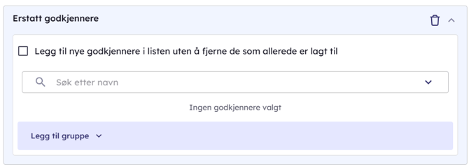 | Erstatt godkjennere | Fjerner eksisterende godkjennere og setter nye |