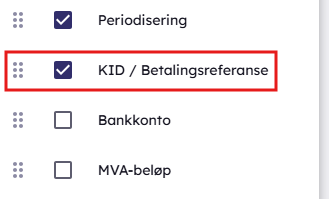Da vil du få opp oversikt over alle kolonner. Her kan du velge å fjerne noen kolonner du f.eks. ikke benytter eller bytte plass på kolonnene. Det er drag and drop her og du holder musen inne og drar den det dit du vil plassere den.