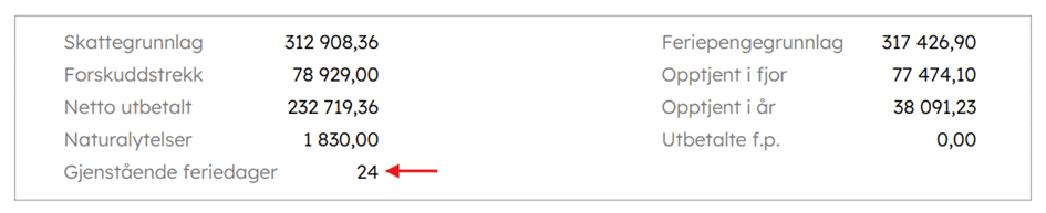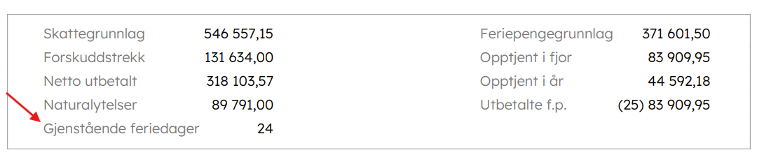 Oversikt over gjenstående feriedager oppdateres i tillegg på lønnsslipp.