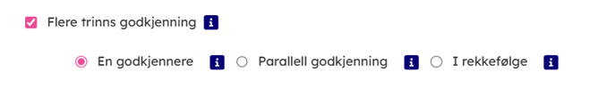 - Det er også mulig å aktivere for Flere trinns godkjenning. Her er det tre alternativ. Godkjenne i gitt rekkefølge, minst en, eller parallell godkjenning.