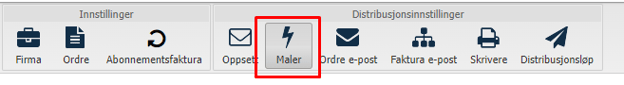 Faktura- og ordredesign håndteres under meny Fakturering – Innstillinger – Maler: