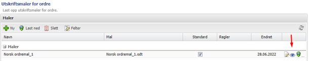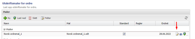 - Klikk på Endre mal-symbolet eller dobbeltklikk på malen for å justere navn, endre standardmal eller sette opp regler for malen. Det er ikke mulig å endre på systemmalene.