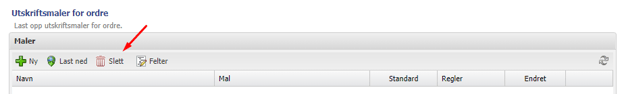 - Klikk på Slett-symbolet for å slette en tilpasset mal. Marker først den malen du ønsker å slette. Det er ikke mulig å slette systemmalene