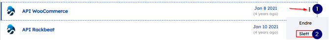 For eksempel, om du skal bytte til en nyere WooCommerce integrasjon, så skal du slette den. Trykk først på de tre prikkene i enden av brukeren, og velg Slett. I popup-vinduet som dukker opp, trykker du Ja. Du har nå slettet en gammel integrasjon!