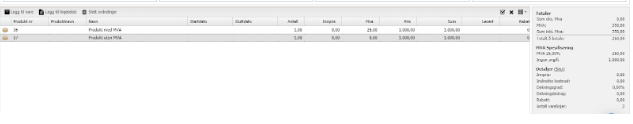- Du har fra tidligere et produkt uten mva. Så oppretter du samme produkt på nytt, bare med MVA. Se denne hjelpefilen for hvordan man oppretter en ordre/faktura uten MVA.