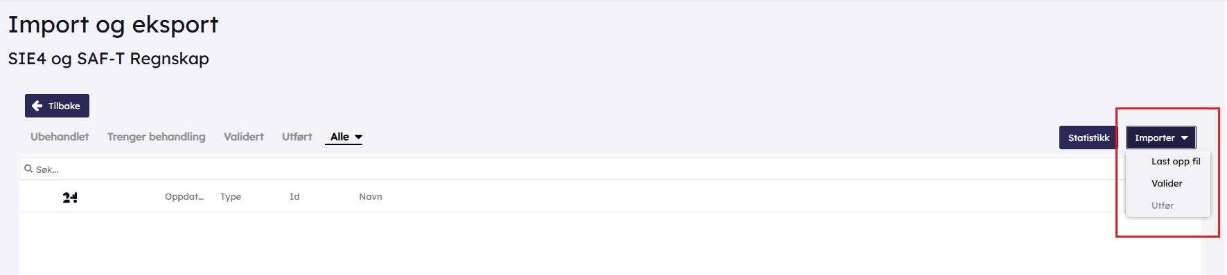 - Gå til fanen Ubehandlet for se det som er lastet inn og deretter klikk på “Importer - valider”