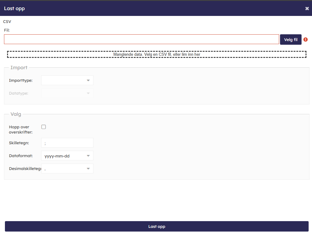 - Hopp over overskrifter: Bruk denne dersom første rad i tabellen (filen) inneholder overskrifter.