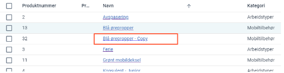 - Når produktet er kopier vil det legge seg i produktlisten med "copy" bak seg.