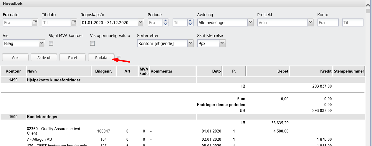 Om du ikke finner bilag på dette beløpet, les videre. - Hent opp hovedbok til rådata.