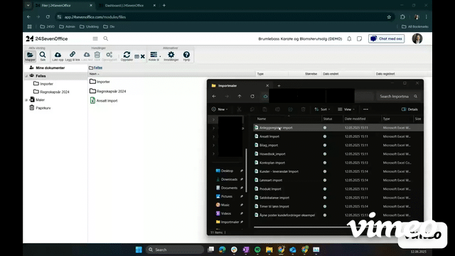 24SevenOffice gir deg muligheten til å laste opp filer som kan lagres i skyen. Dette kan gir deg mulighet til å samle dokumentasjon, sikre sporbarhet, lagre logistikk og produktrelatert informasjon eller lagre rapporter og analyser på ett sted. Dersom du legger filene under Felles-mappen vil de være tilgjengelig for alle brukere med riktige tilganger. Dersom du legger det under Mine dokumenter vil de kun være synlig for deg