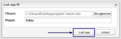 Filnavn feltet vil nå ha en filsti i seg, og du kan trykke på Last opp og filen vil legges i ønsket mappe.