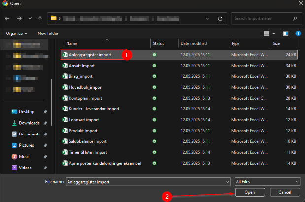 Finn filen du skal laste opp og klikk Open (dersom du har norsk kan det stå Åpne), eller dobbeltklikk på filen