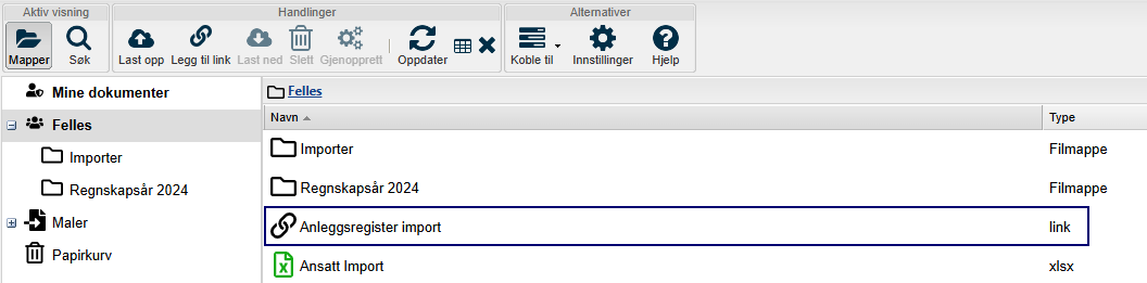 Linken til dokumentet vil da ligge i mappen du valgte med navnet du valgte på linken og vil synliggjøres av et linkicon i listen.