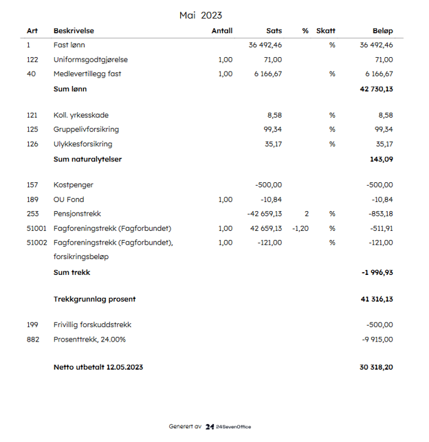 • Sum trekk - diverse som betales via lønn, som fagforeningstrekk og pensjonstrekk