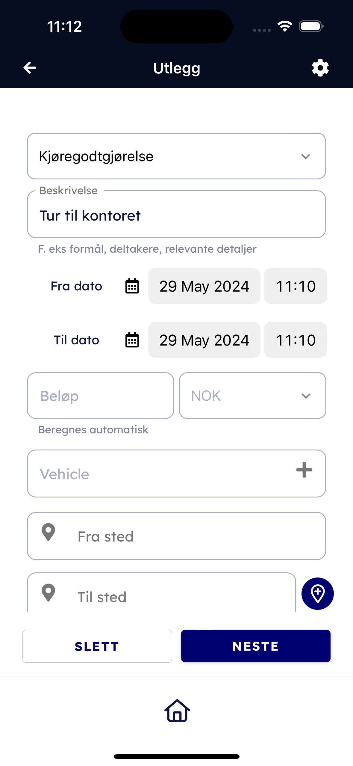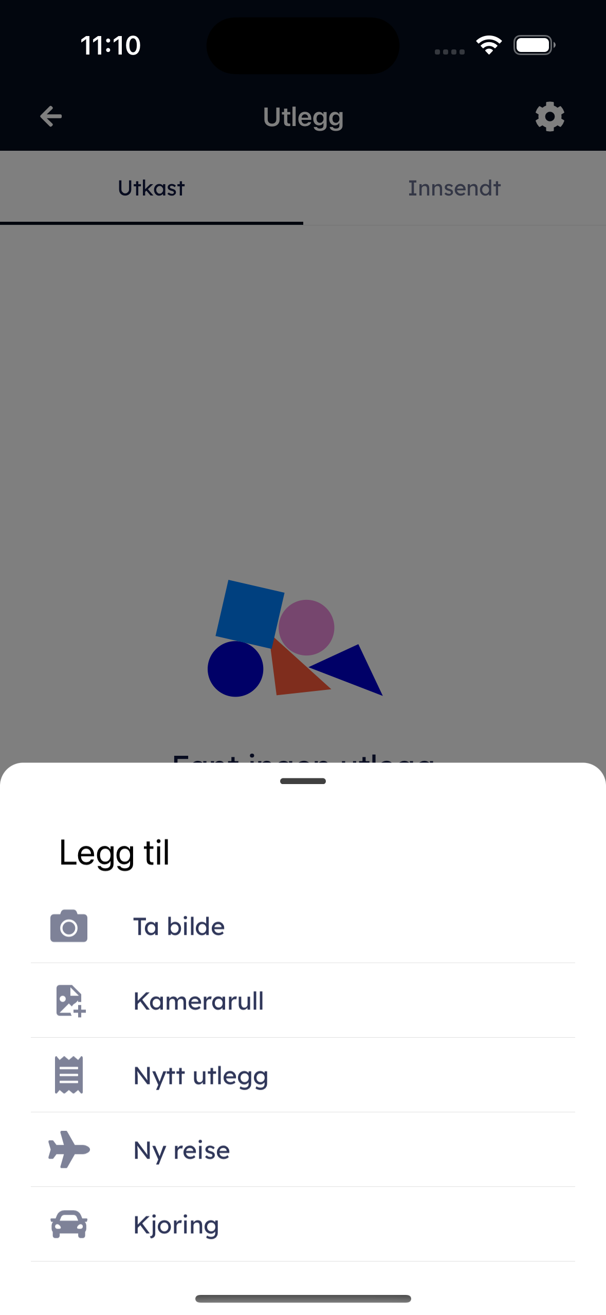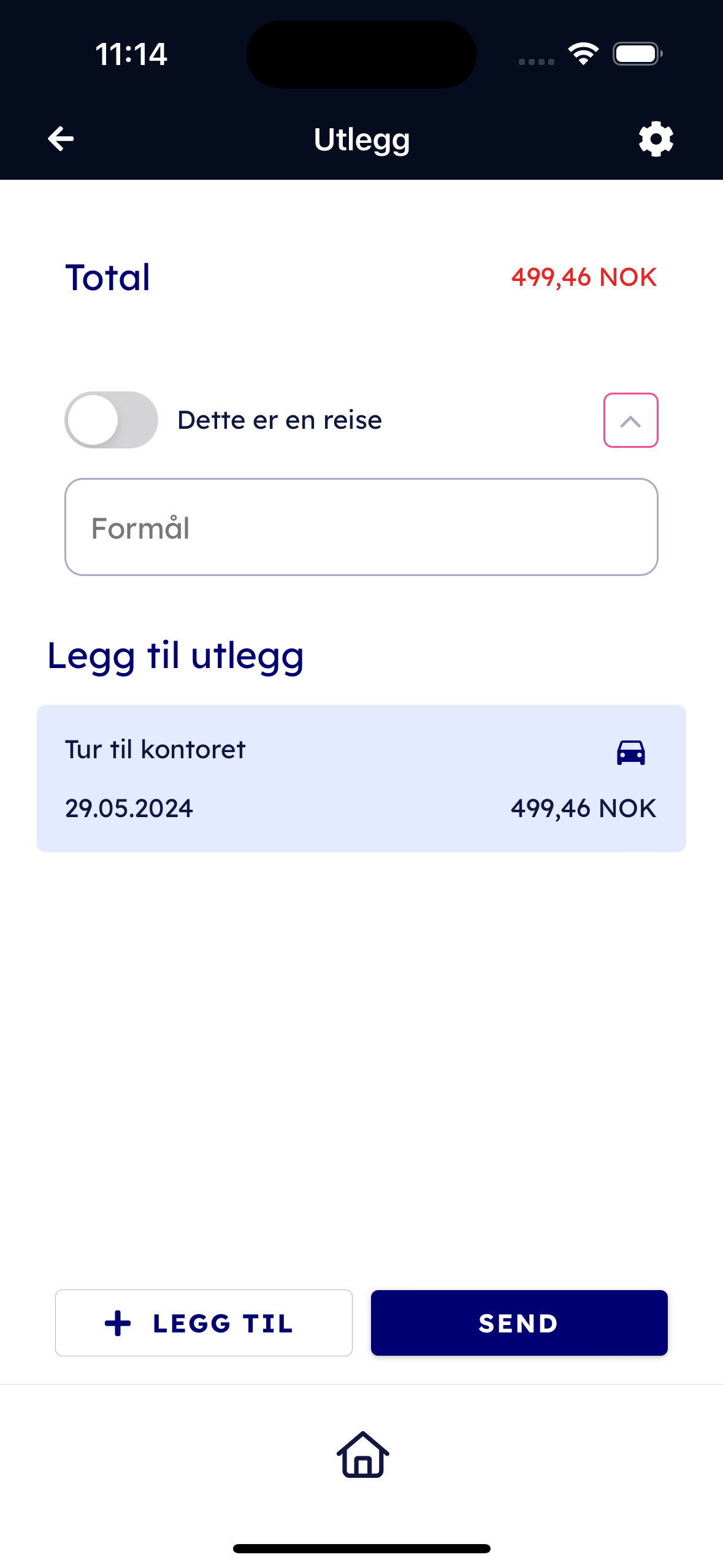 For å opprette en kjøring starter du med å opprette et utlegg som normalt i mobilappen.