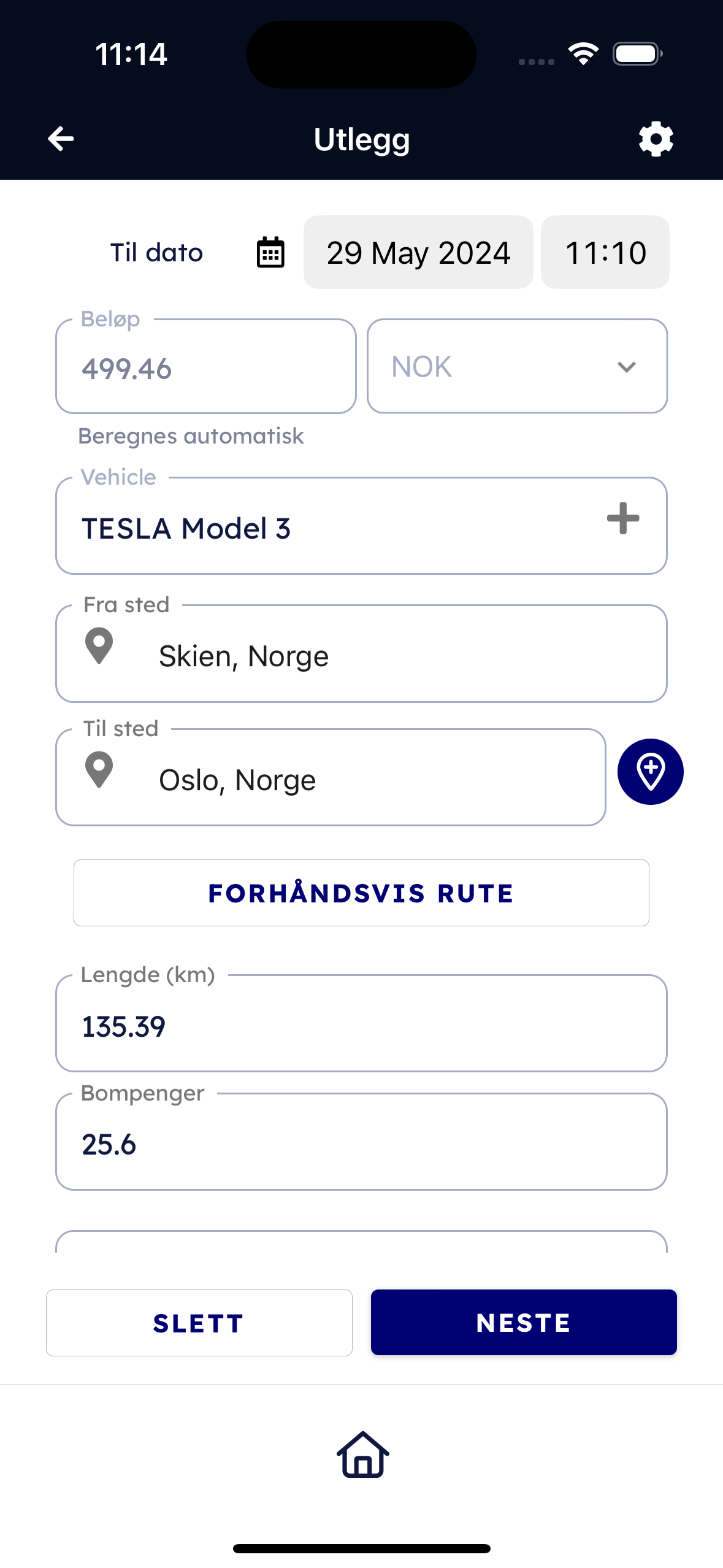 - Ved å legge til Fra sted til sted vil lengden og bompenger automatisk bli regnet ut.