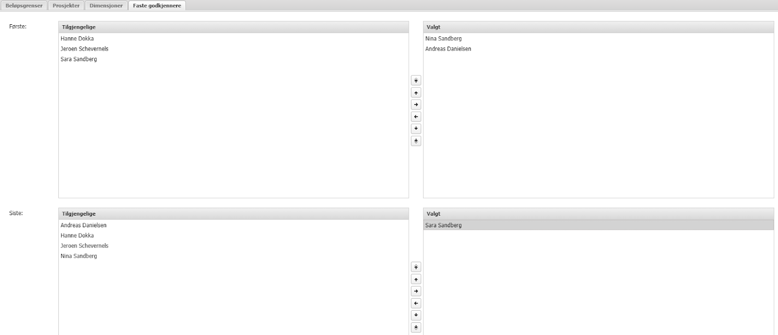 Merker en eller flere personer du vil ha som faste godkjenner som første og siste godkjenner og trykk på pilen til høyre.