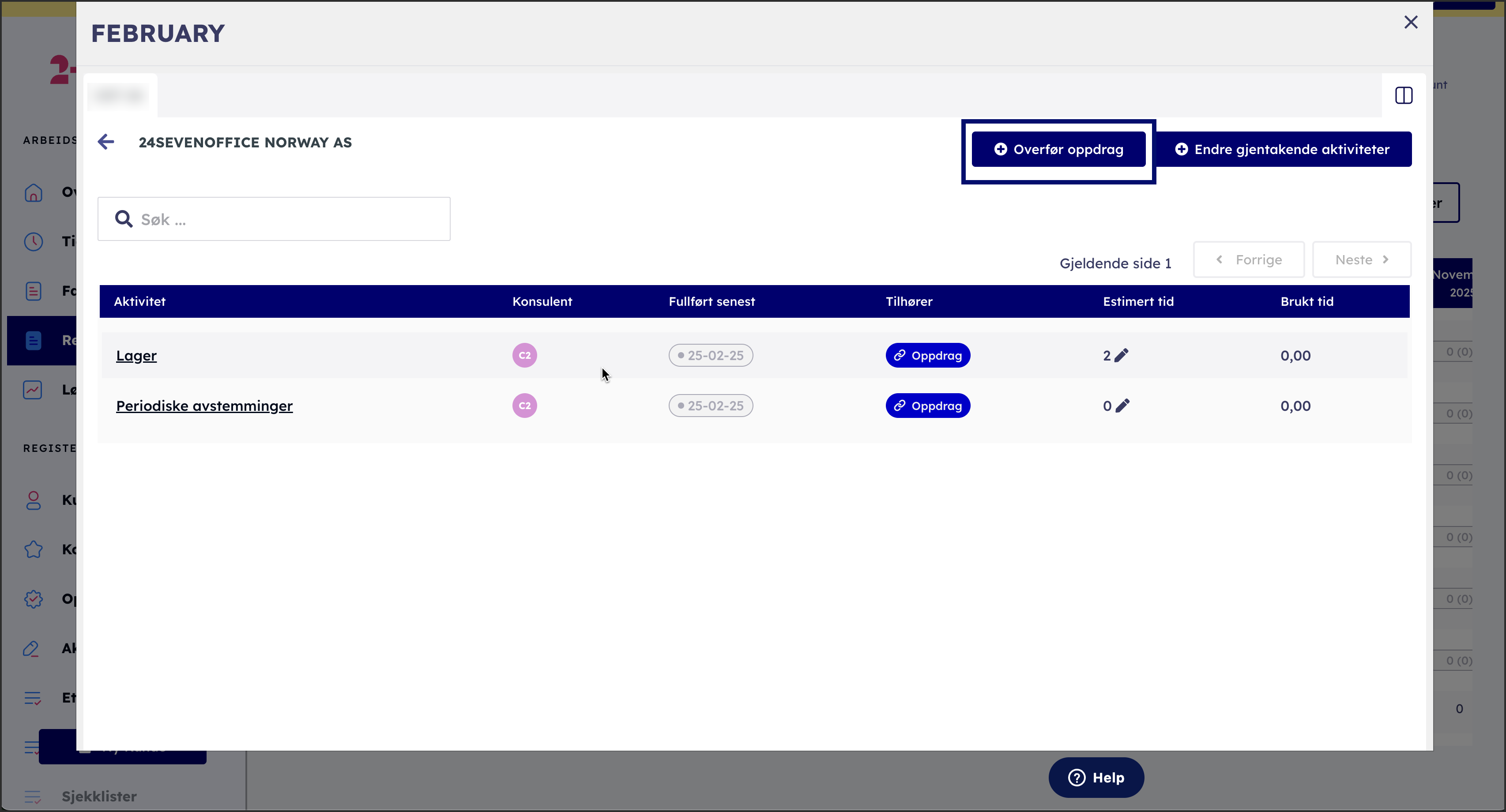 Klikk på Overfør oppdrag for å flytte oppdraget.