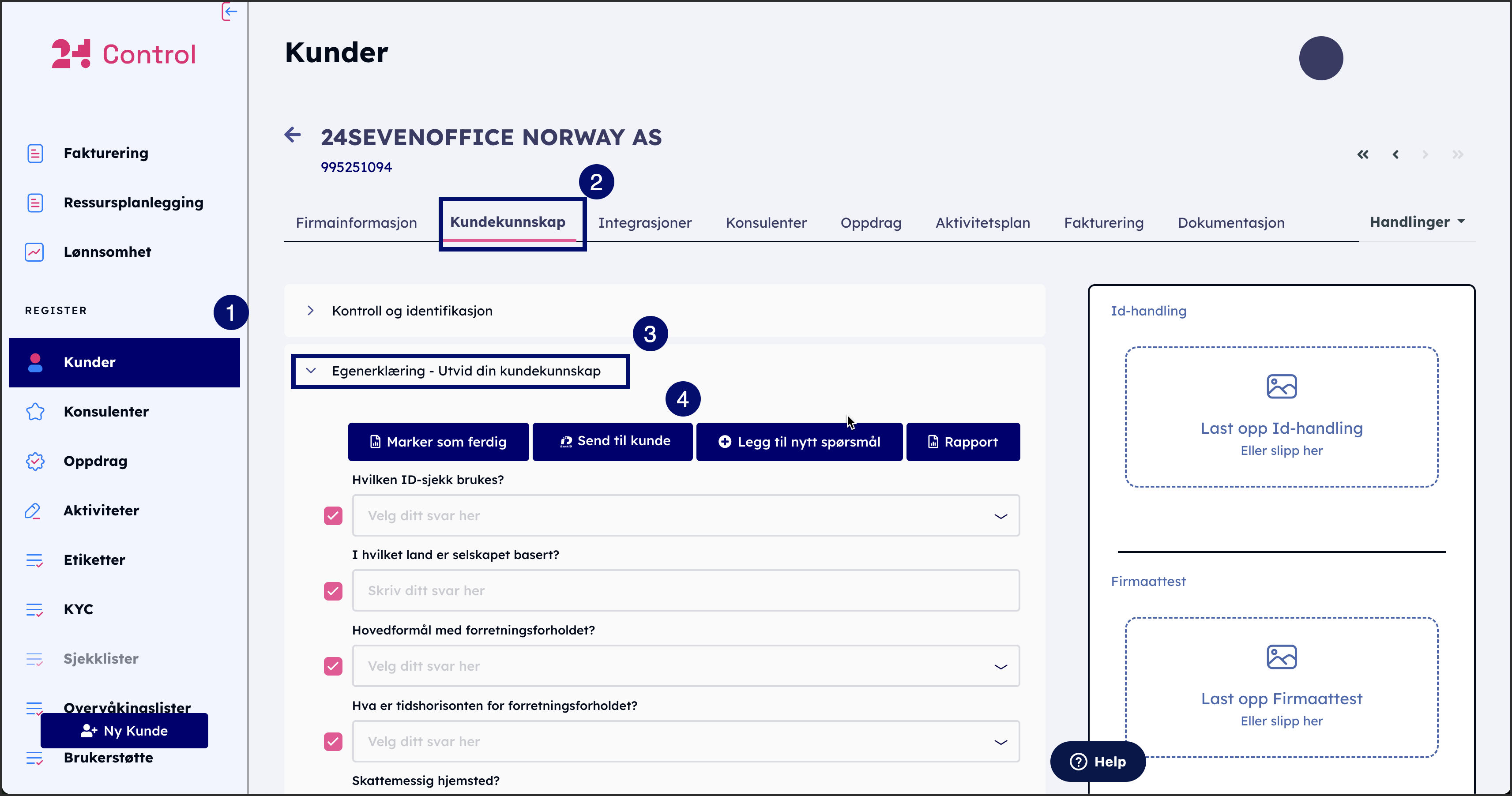 Finn seksjonen Egenerklæring - Utvid din kundekunnskap.
