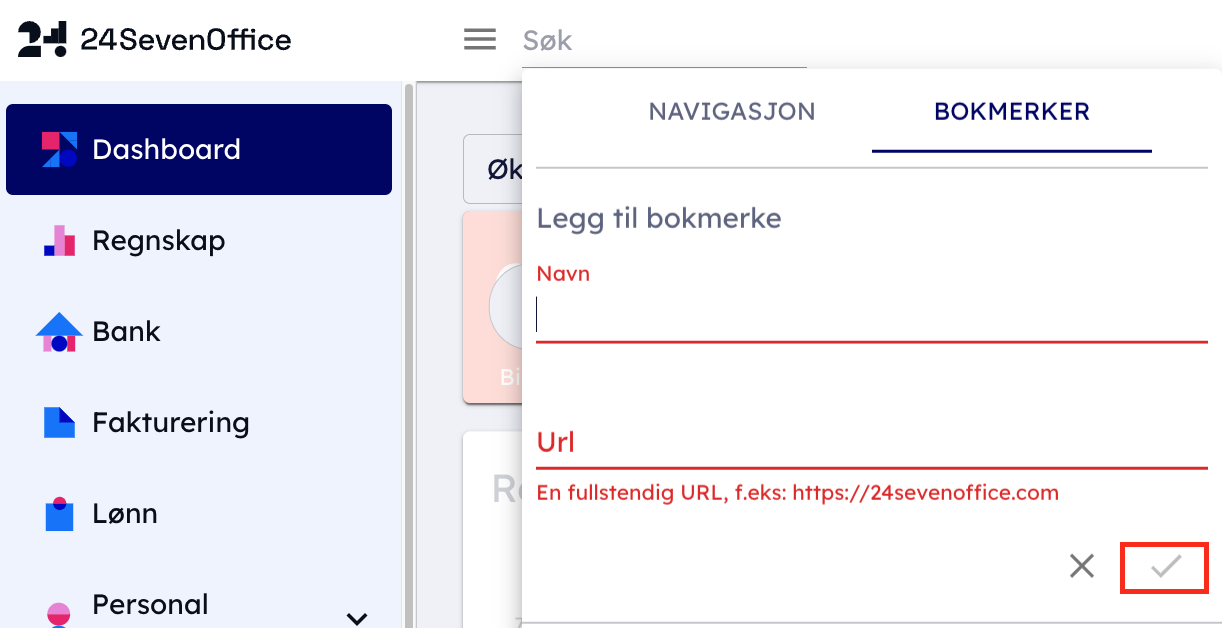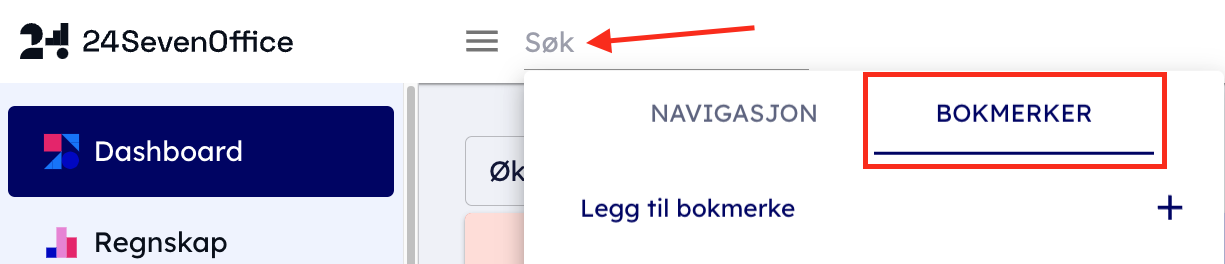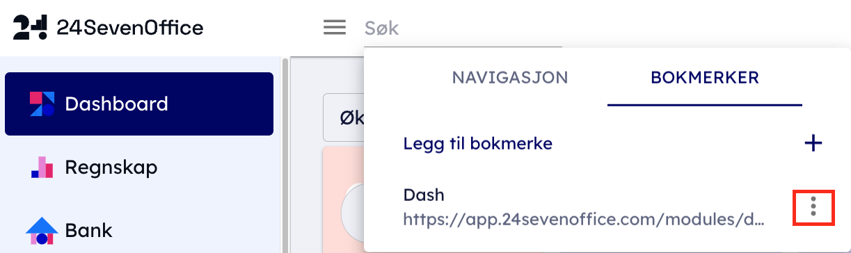 Bokmerke kan brukes for deg som trenger å lagre sider eller linker i 24SevenOffice