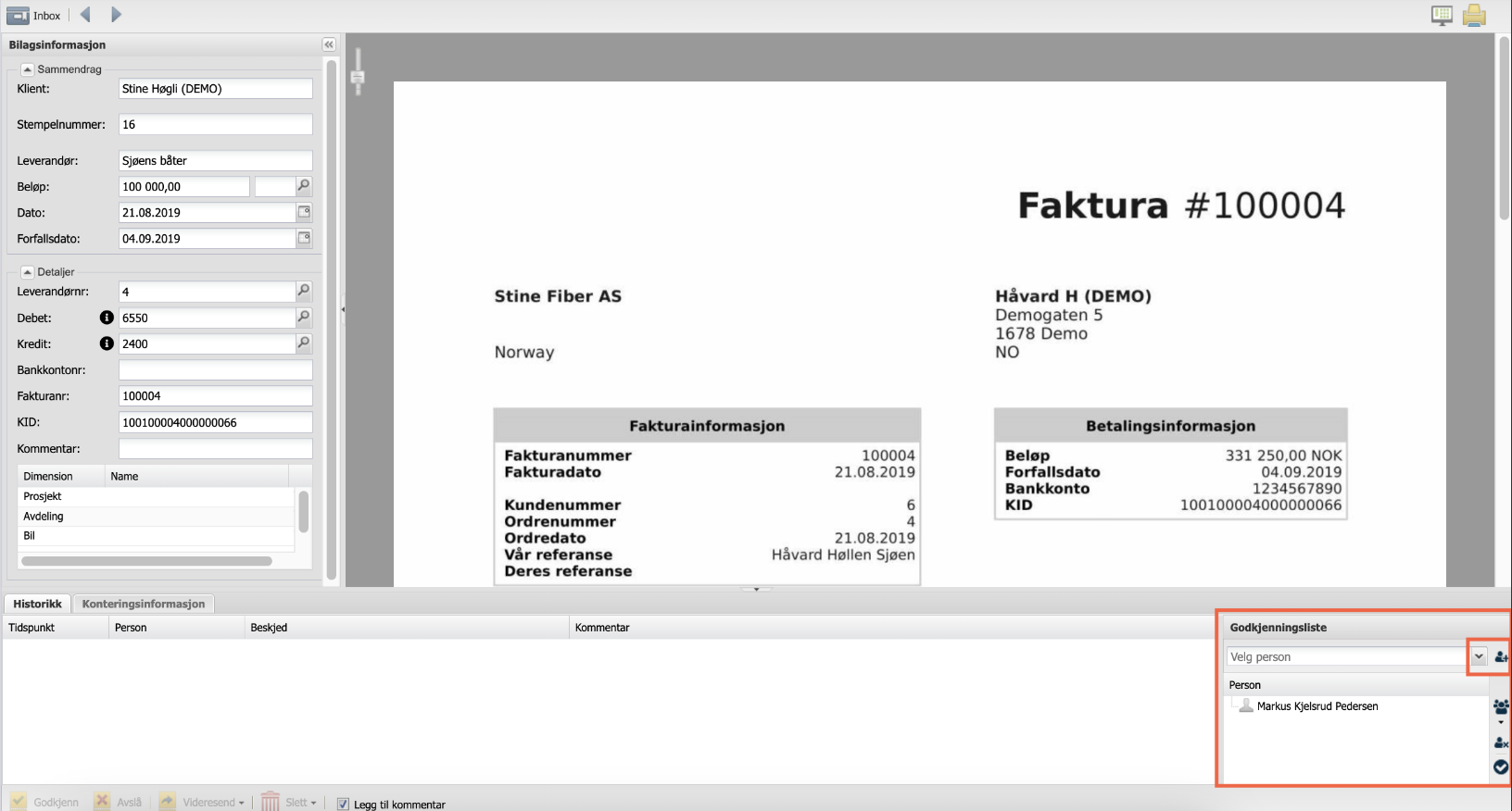 Finn dokument IDén i godkjenningsmodulen og legg deg selv som godkjenner.