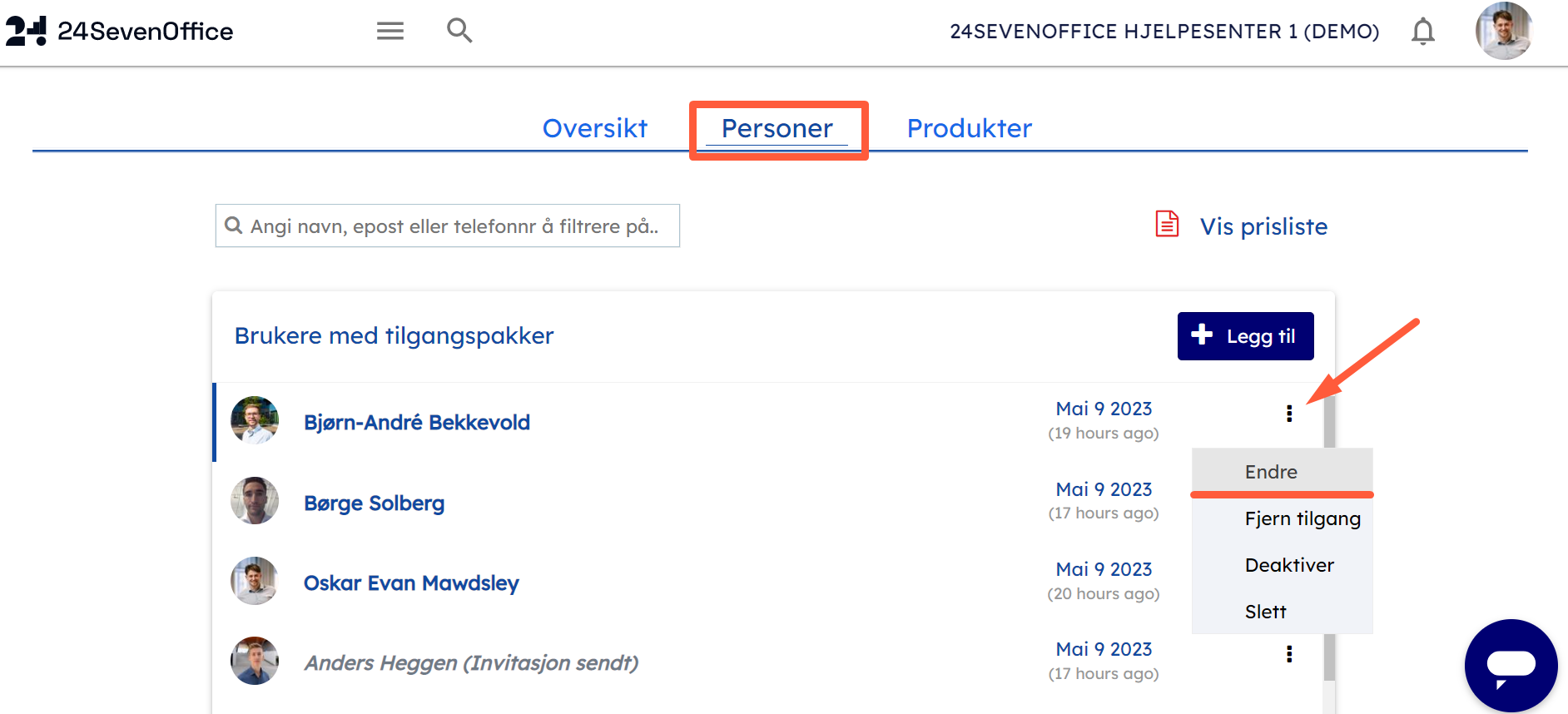 Trykk på Personer -> Velg brukeren som skal oppgraderes ->