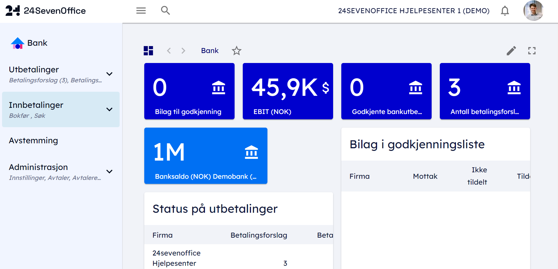 Er bankavtalen din satt opp med RGB (regnskapsgodkjente betalinger) må du bekrefte din identitet med BankID når du logger inn i bankmodulen første gang. - Tilpass ditt dashbord