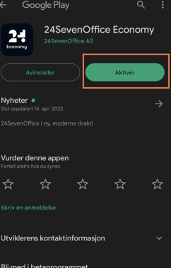 Gå til Play butikk og søk opp 24SevenOffice Economy, du vil da få frem appen 24SevenOffice Economy.
