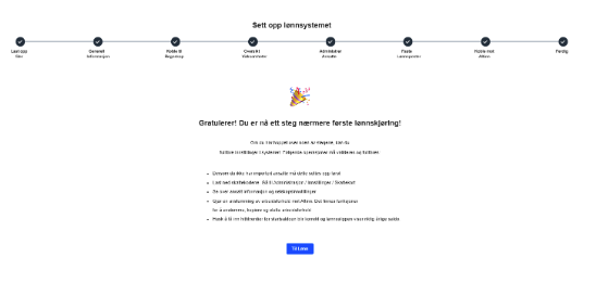 - Du er nå ferdig onboardet. Om det er noe i onboardingen du ikke har fylt ut kan dette gjøres i lønnsklienten.