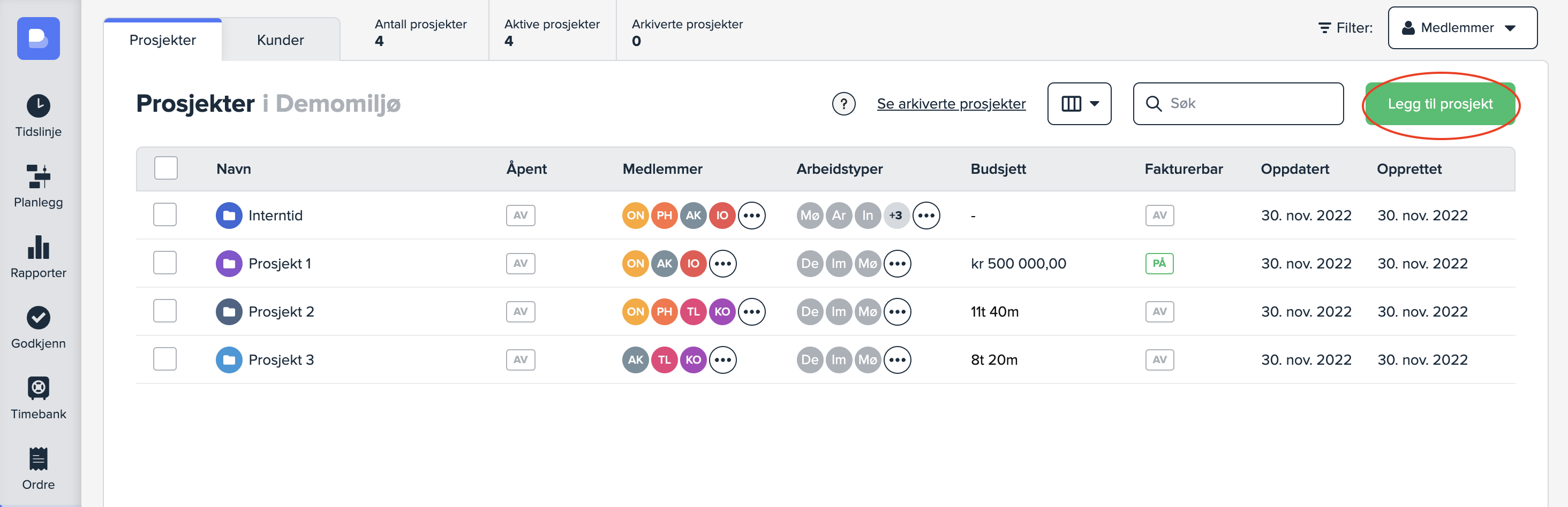 På prosjektsiden i Finago Office kan du opprette og styre oppgavene slik du ønsker. Koble prosjektene til arbeidstyper du har lagt inn i Busy. Dersom prosjektet ikke er åpent prosjekt, velger du også hvilke ansatte som kan føre tid på oppgavene.