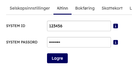 3. Koble lønnsmodulen mot Altinn. Fyll inn systemID og passord som er satt opp mot 24SevenOffice i Altinn. Dette brukes sammen med din personlige tilgang (personnummer og passord) for å opprette tilgang i Altinn.