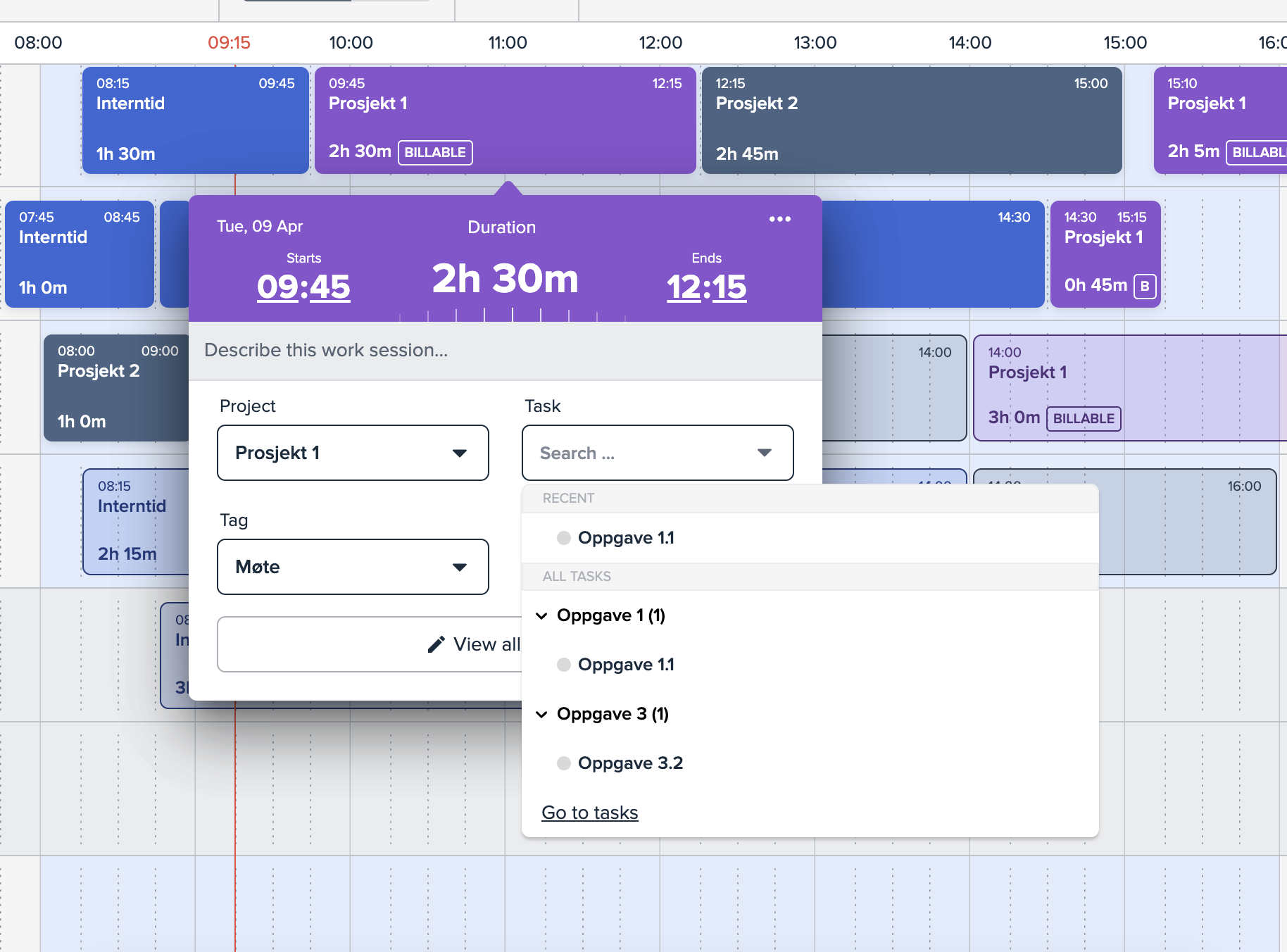Registrer tid på oppgaver