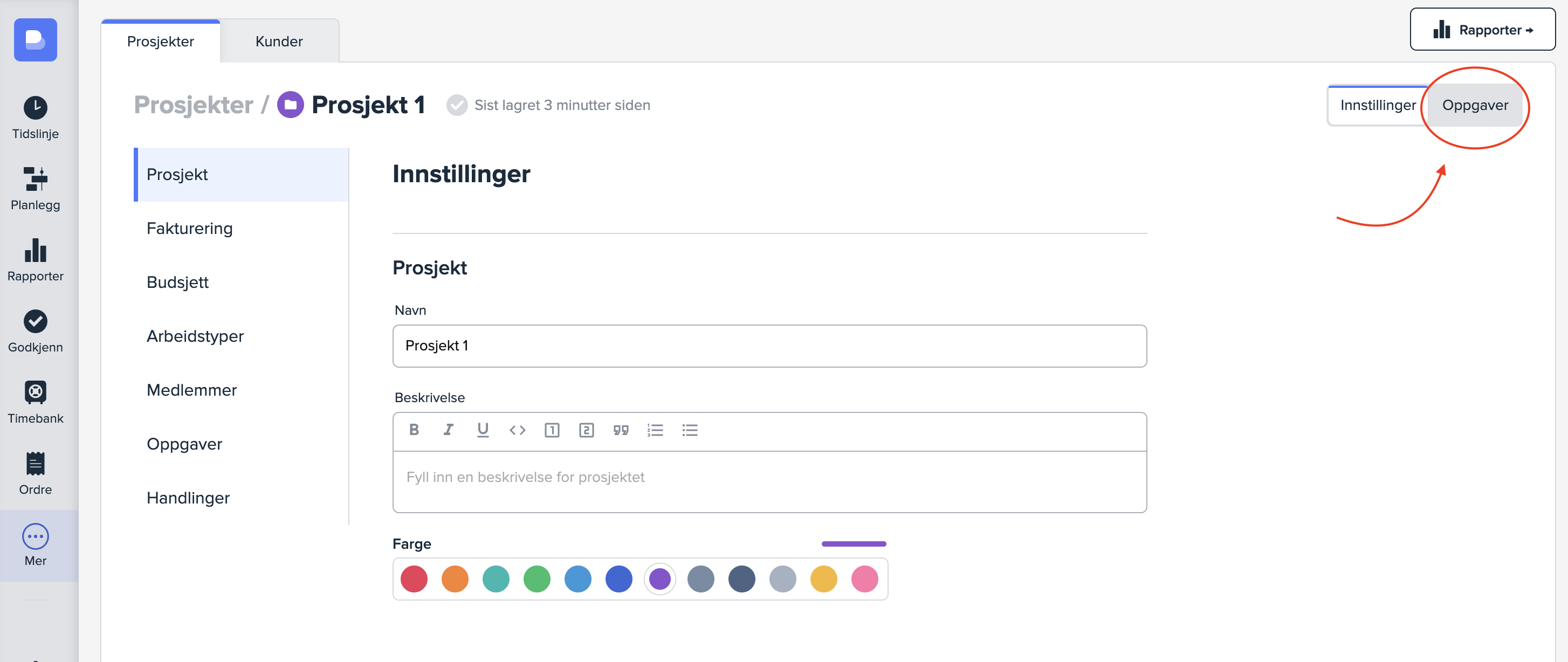 For å velge oppgaveinnstillinger går du først inn på prosjektet du ønsker å se på.