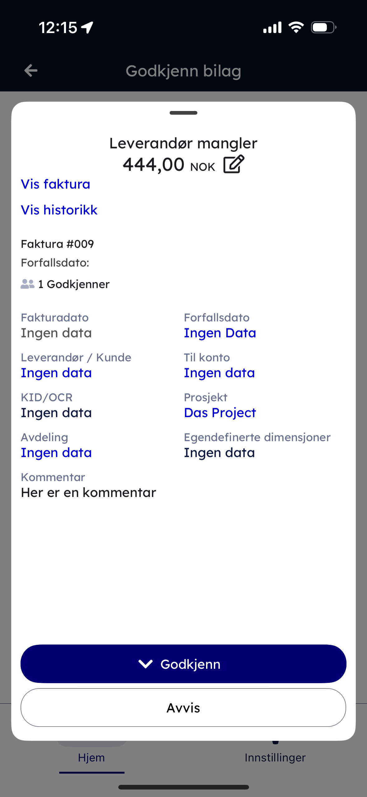 - Hvis du avviser bilaget, kreves det en kommentar.