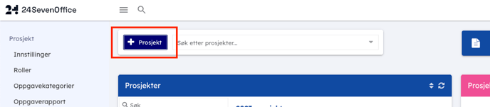 Valget for å opprette nytt prosjekt finner du øverst i prosjektmodulen.