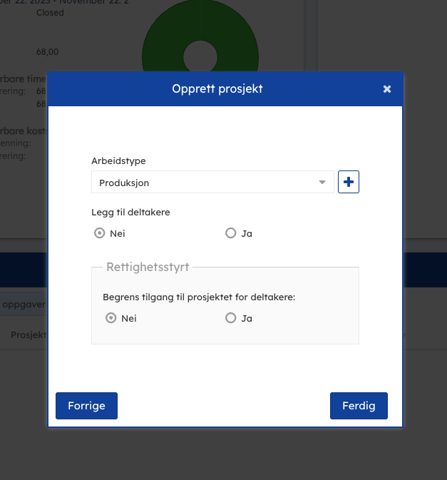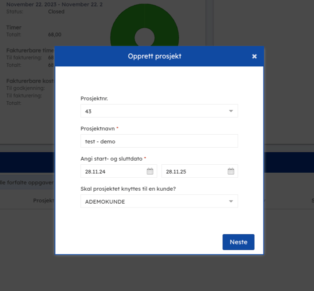 Etter at innstillingene for prosjektmodulen er satt opp er dere nå klare for å ta i bruk og opprette prosjekter. Dette gjøres på følgende vis: