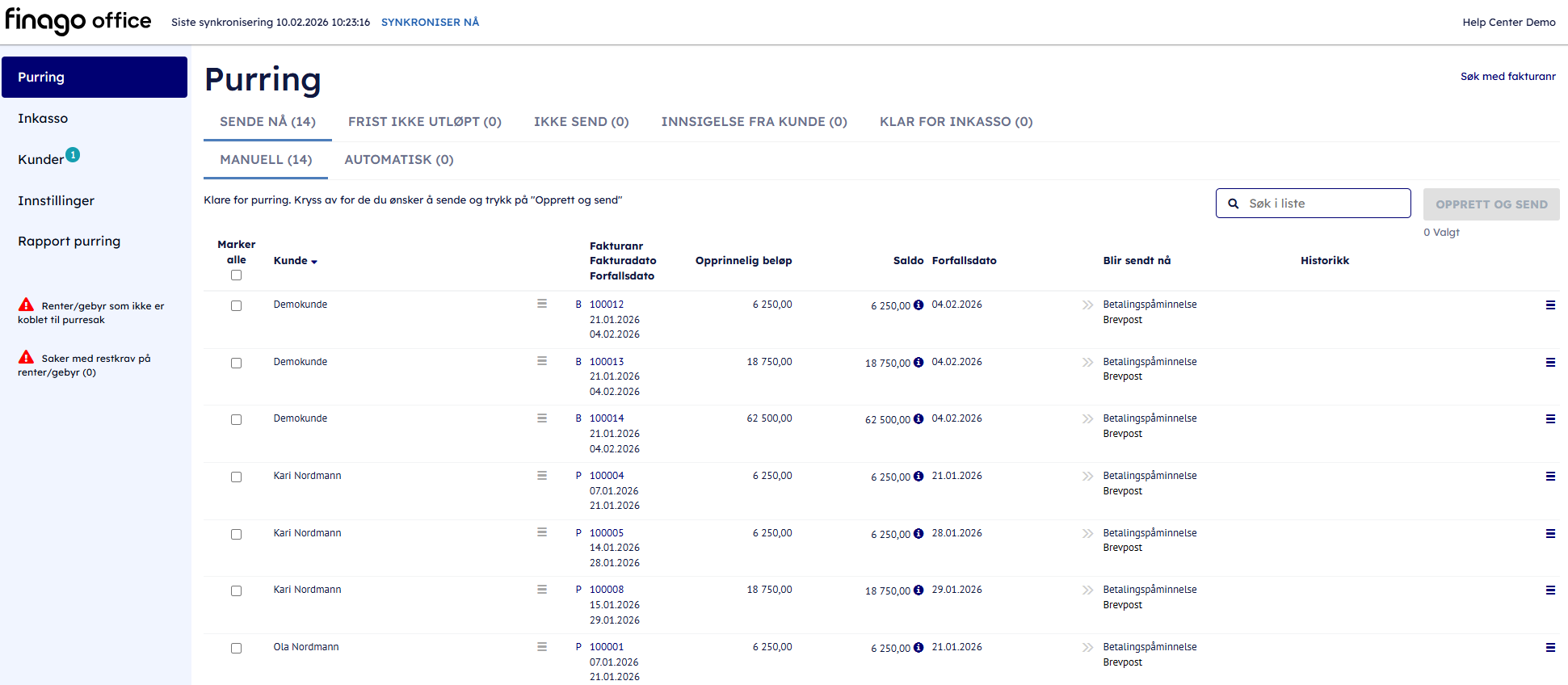 Lær mer om å sende purring til Inkasso i Finago Office Purring