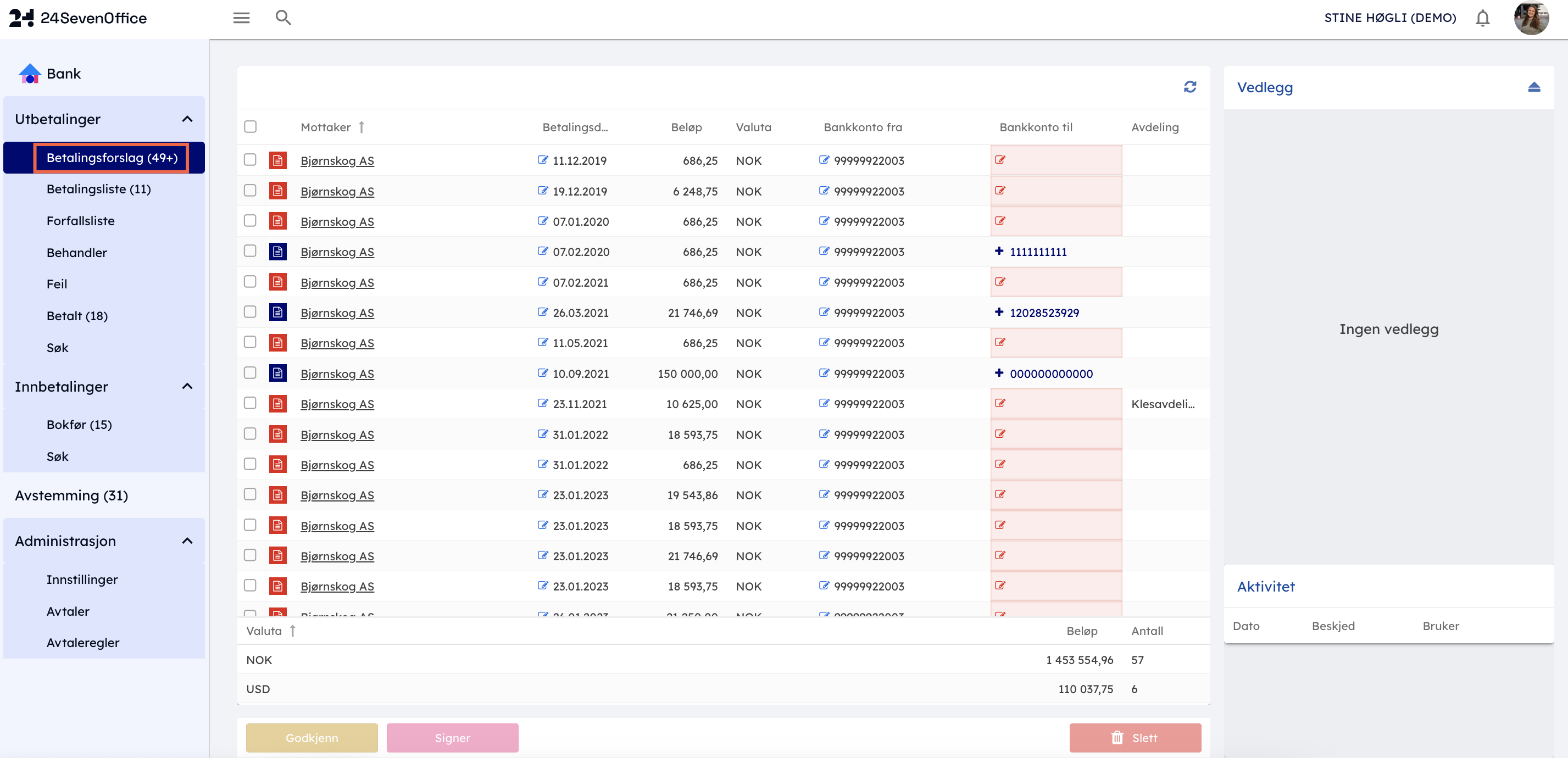 Vi vil her gå gjennom betalingsforslag i bankmodulen og hvordan du ser betalingsinformasjon, godkjenner, signerer og sletter betalinger.