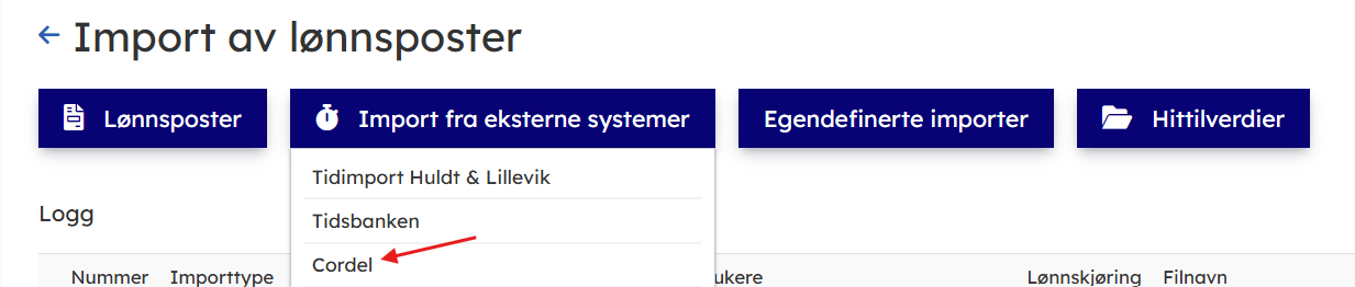 - Import av timer fra Cordel.