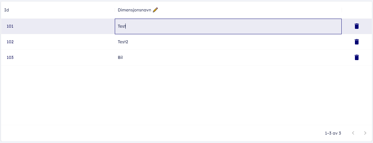- Om du vil slette en dimensjon klikker du på søppelkassen bak dimensjonen.