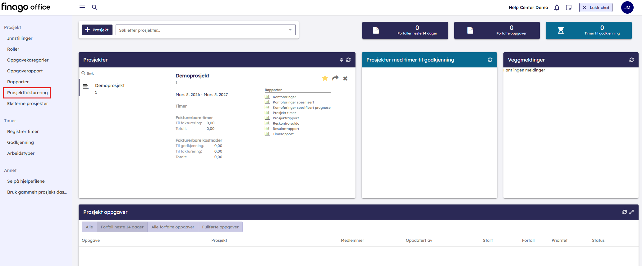 - Gå inn på prosjektfakturering fra dashboardet