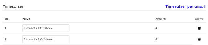 - Det er to måter å legge opp timesatsene på de ansatte.