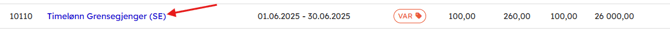 - Lønnsarter for grensegjengere blir alltid liggende med landet den ansatte er registrert med på skattekortet i en parentes i navnet på lønnsarten.