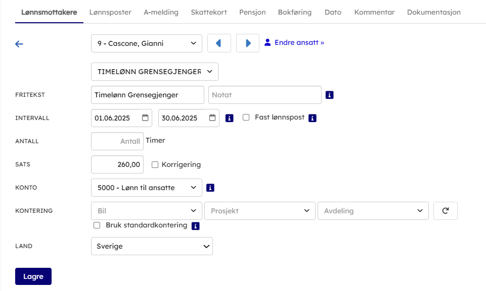 I denne hjelpeartikkelen går vi gjennom hvordan du tilpasser skattekort og lønnsarter for grensegjengere.