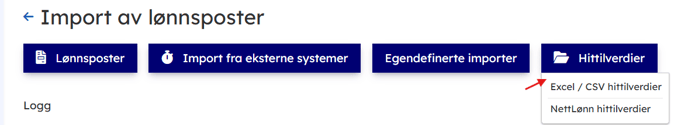 - Trykk på Hittilverdier - Excel/CSV hittilverdier.