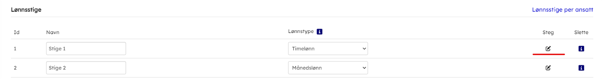 - Opprett stegene i lønnsstigen. Dette gjør du ved å trykke på Steg helt til høyre i raden på Lønnsstigen.