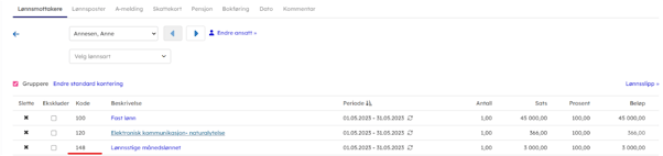 På ansatte med månedslønn vil det ligge en fast lønnspost - lønnsart 148 Lønnsstige månedslønnet