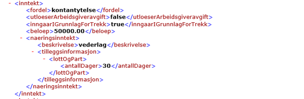 - Eksempel på hvordan dette kan se ut i A-melding: