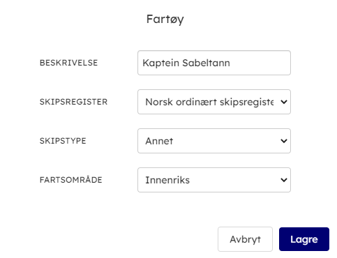- Opprette nytt fartøy ved å klikke på Legg til.