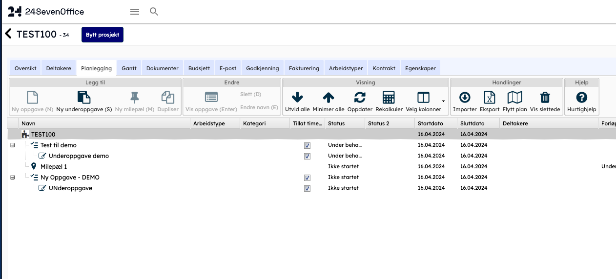 Dette er en planlegger for å kunne opprette oppgaver, underoppgaver, milepæler og videre kunne delegere disse på prosjektdeltakerne.